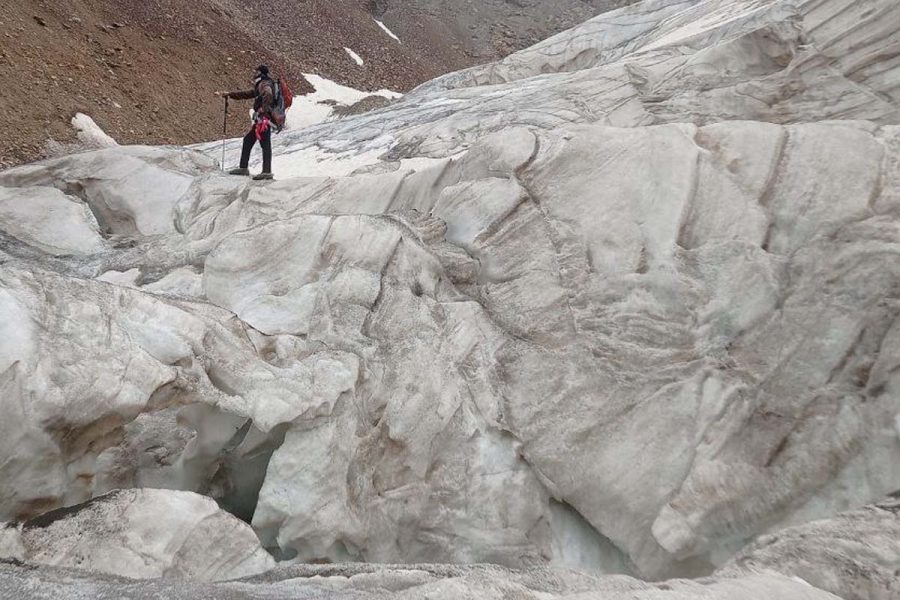 The “Kara-Batkak” glacier in the Tien-Shan mountain range of Kyrgyzstan has been studied by glaciologists. According to the statistics of glaciologists, the temperature of the sun has warmed by 1.5 degrees since 1930. The “Kara-Batkak” glacier is shrinking from 1 meter to 2 meters. Kyrgyz Republic, Issyk-Kul Region, Jeti-Oguz District. Photo taken on Redmi Note 9 Phone.