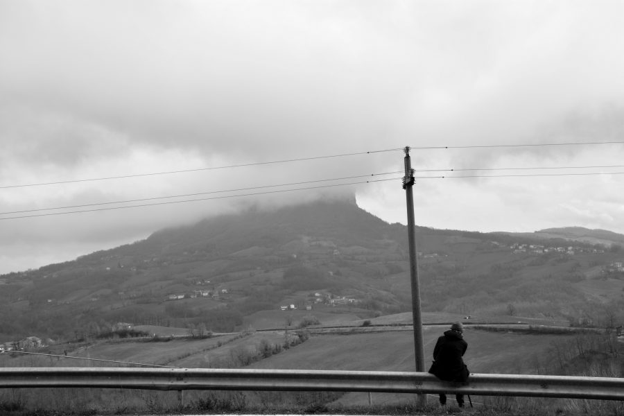 Il pensatore osserva le nuvole sulla Pietra