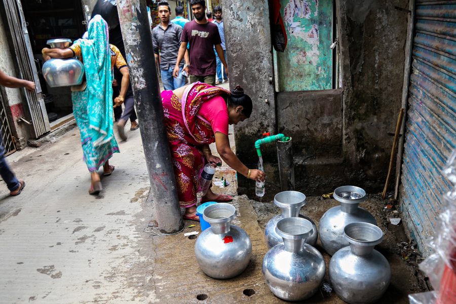 Many families in a colony in the city are sharing a water tank.